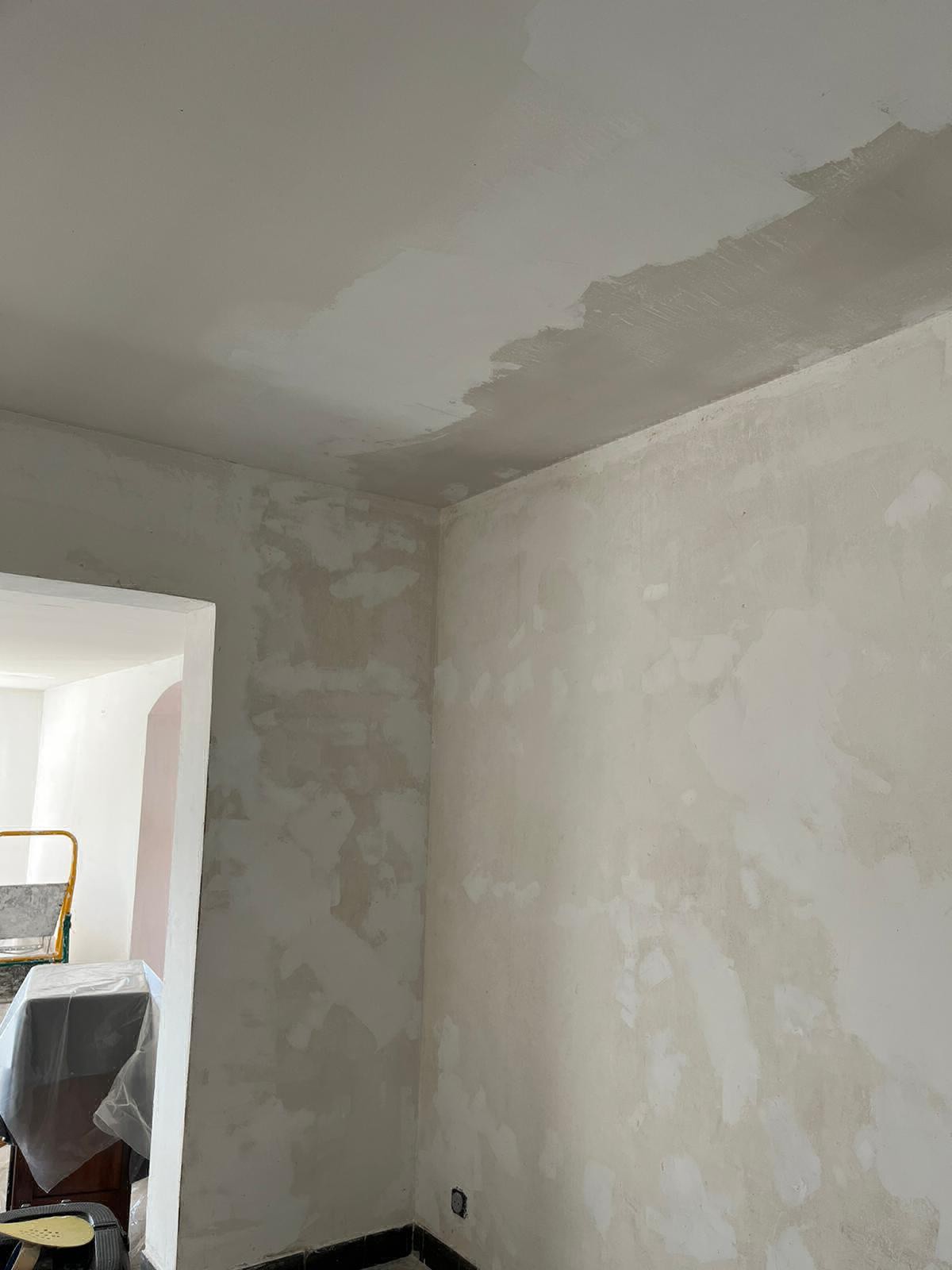 Pour cette villa à Martigues, nous avons commencé par un décroutage minutieux des murs anciens, indispensable pour éliminer les parties dégradées et préparer une base saine. Ensuite, nous avons traité les fissures pour garantir une finition durable. Un redressage précis a permis de rétablir la planéité des surfaces, préalable essentiel à un résultat homogène.