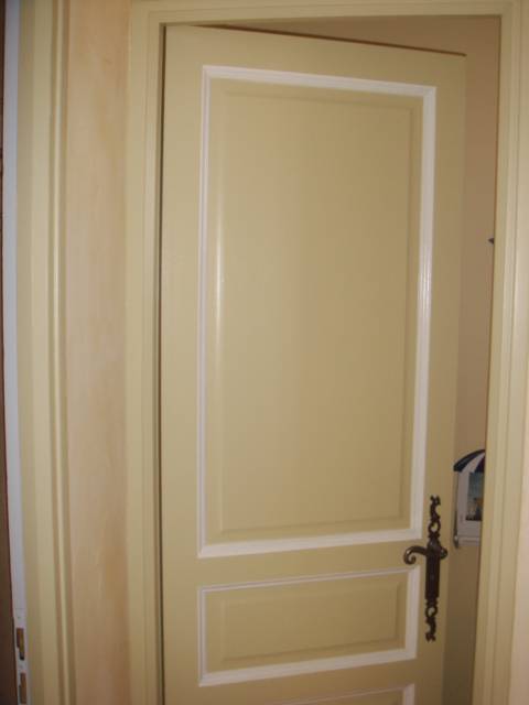 Les portes sont réalisées avec un rechampie de couleur claire sur les moulures.