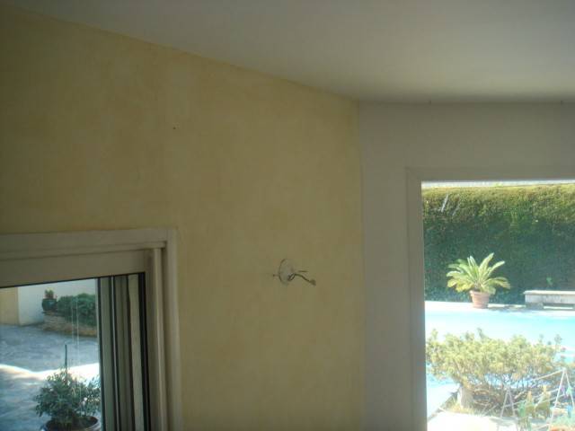 La Sté Valdès Frères a réalisée des travaux de décoration intérieur sur une villa située sur la commune de Chateauneuf les Martigues. Un enduit de type pâte à papier a été appliqué de manière régulière et structurée à l'aide d'une lisseuse en inox, pour faire ressortir le motif et apporter la touche décorative souhaitée, une cire glycéro ambrée a été appliquée.