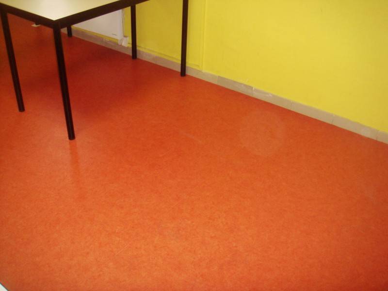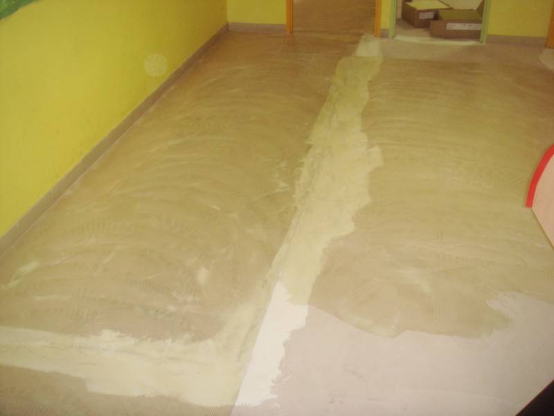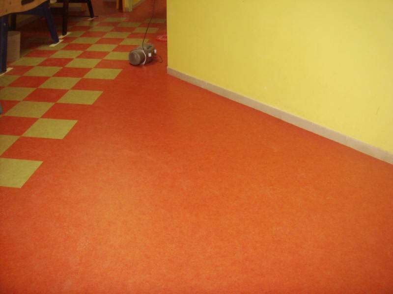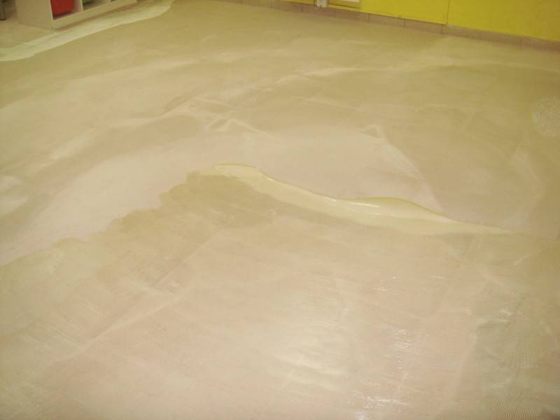 La pose de ce revêtement plastique a nécessité l'application d'un ragréage P3 sur le carrelage éxistant.