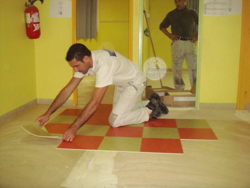 La Sté Valdès Frères a réalisée sur la commune de Marignane, la pose de dalles PVC de format 33x33.