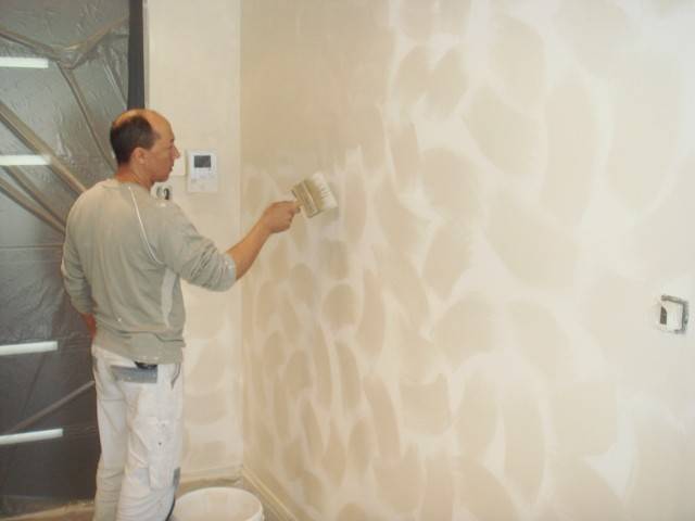 Dans cette villa de style comtemporain située sur Marseille, le client souhaitait une peinture totalement mat, la Sté Valdès a donc proposé une peinture à effet de chaux de couleur beige sable appliquée à la brosse, en harmonie avec le mobilier design. Afin d'apporter un côté lessivable à ce produit, nous avons appliqué un vernis de finition mat.